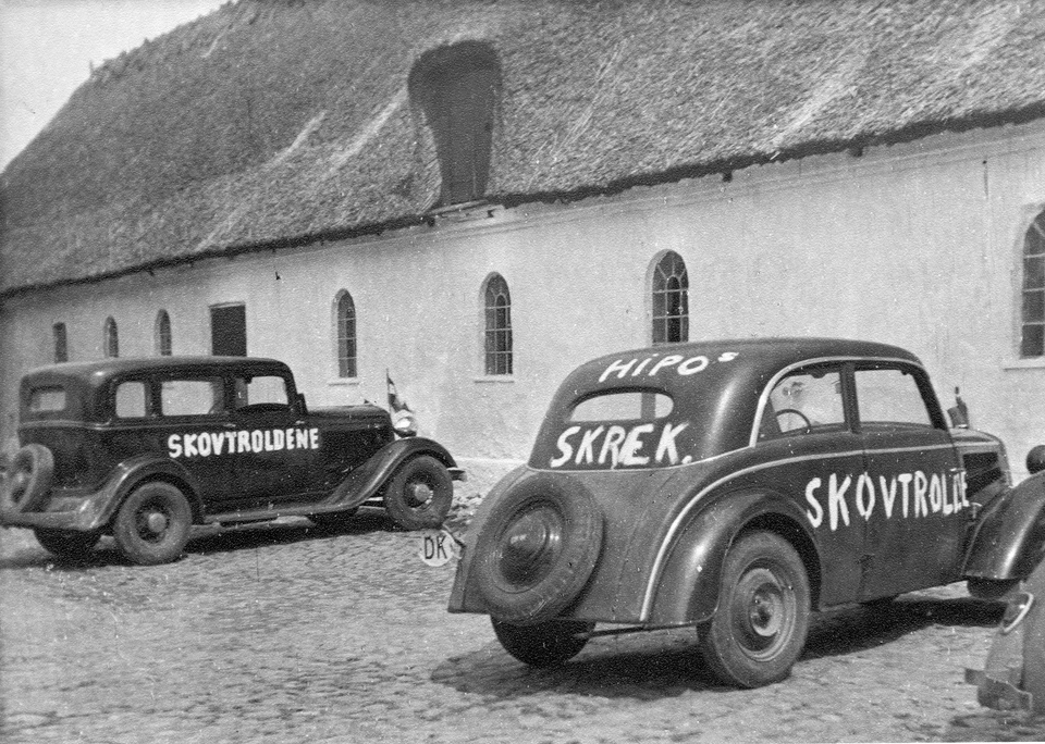Modstandsgruppen Skovtroldenes biler foran Kongensgave, Helsinge