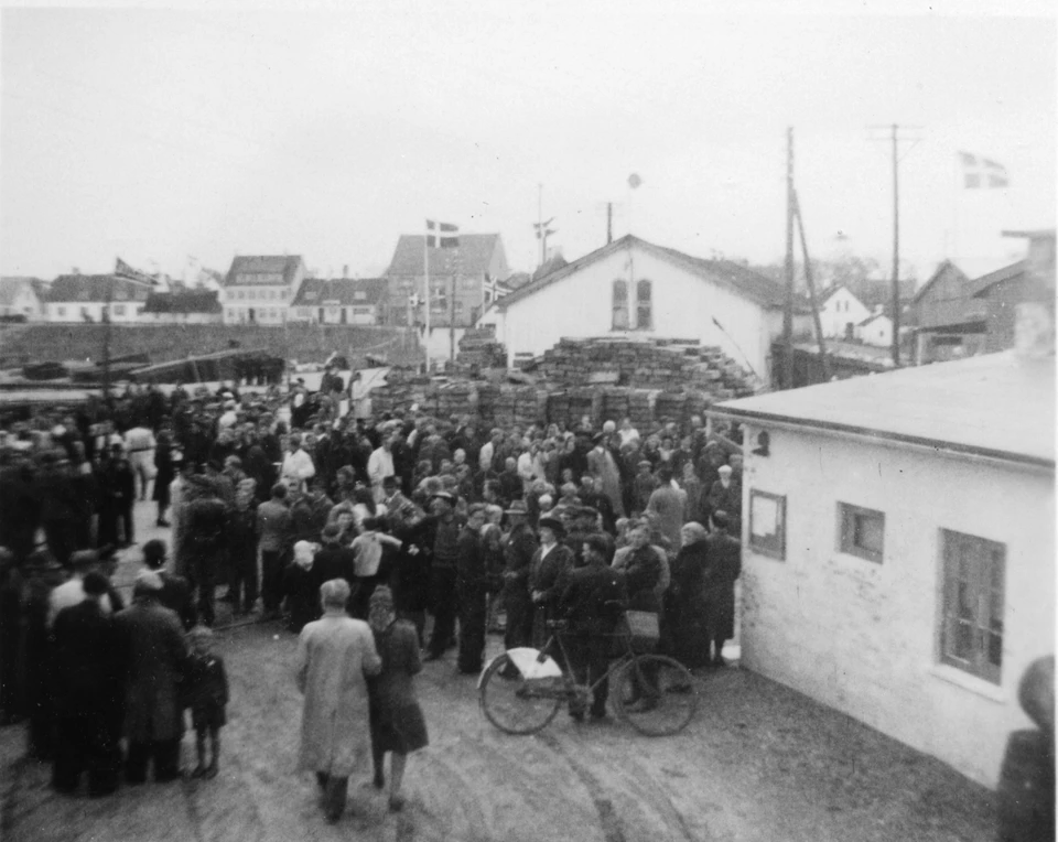 Menneskemængde på Gilleleje Havn, 5. maj 1945