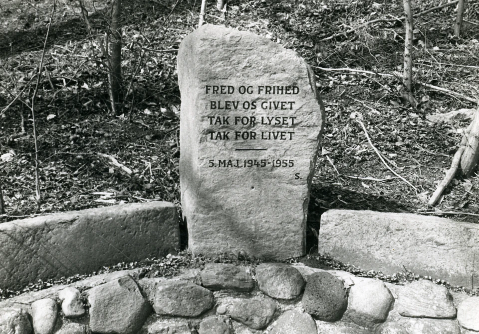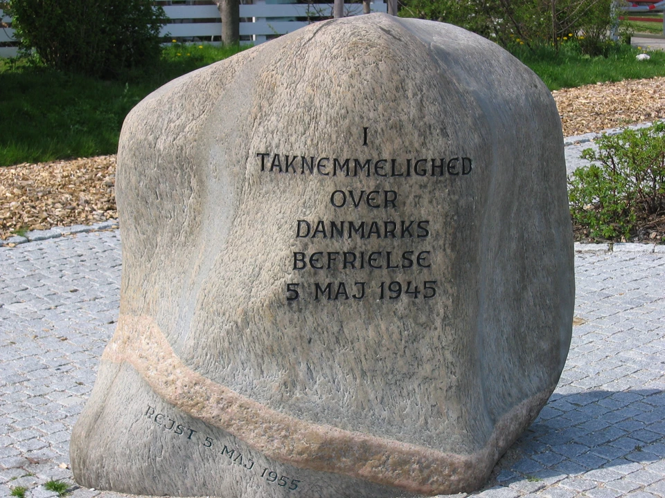 DE: "Zum 10. Jahrestag der Befreiung im Jahr 1955 wurden in Gilleleje, Søborg und Græsted mehrere Gedenksteine errichtet. Sie wurden zum Gedenken an die Befreiung und als ewige Mahnung, die Freiheit nicht als selbstverständlich anzusehen, errichtet."